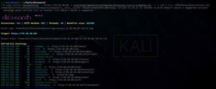 sudo python3 dirsearch.py -u https://10.10.10.60 -w /usr/share/wordlists/dirbuster/directory-list-2.3-medium.txt -f -e txt