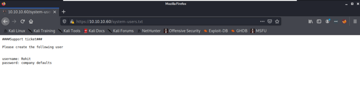 we fount an support ticket for a user creation called rohit with an default company password (we already have it previously)