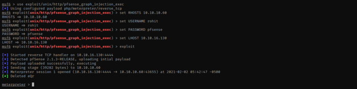 Module: exploit/unix/http/pfsense_graph_injection_exec